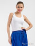 Майка приталенного покроя на широких бретелях с округлым вырезом. Изделие выполнено в однотонной цветовой гамме и отлично комбинируется с любым предметом гардероба. Замечательный вариант для уверенных в себе леди.
