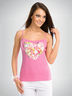 Майка на тонких бретелях с романтичным принтом - сердце из букета роз, украшенное словом LOVE из страз.