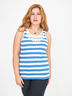 Майка из мягкого джерси в полоску. Круглый вырез с однотонным кружевом спереди. Длина ок.64 см. Параметры фотомодели: рост 172 см, российский размер 48.