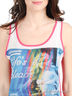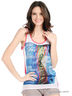 Детали: округлый вырез горловины и проймы дополнены трикотажными лентами, полочка декорирована оригинальным набивным рисунком