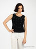 Мягкая трикотажная майка в рубчик. Без рукавов. Округлый вырез горловины. Полочка изделия украшена вышивкой пайетками и стразами.
