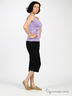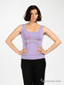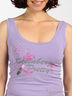 Майка из мягкого трикотажа. Без рукавов. Широкий округлый вырез горловины оформлен трикотажной резинкой в рубчик. Полочка изделия декорирована надписью-принтом и стразами.