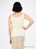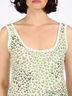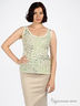 Простая трикотажная майка без рукавов. Широкий округлый вырез. Вырез и проймы оформлены эластичной трикотажной резинкой в мелкий рубчик. Полочка декорирована рисунком-принтом.