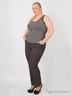 Стильная майка из вискозного материала в неширокую горизонтальную полосу. Широкий округлый вырез горловины. Окантовка ворота, пройм рукавов.