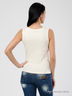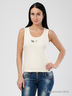 Однотонная майка в рубчик 1x1, с окантовкой выреза и пройм и 3 коралловыми нашивками. Боковые разрезы 6 см для разм.50-52.