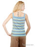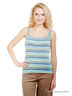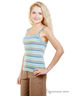 Майка в разноцветную полоску в рубчик 1x1, с однотонной окантовкой и 3 люверсами на бретелях шириной 2,5 см. Боковые разрезы 6 см для разм.50-52.
