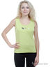 Однотонная майка в рубчик 1x1, с окантовкой выреза и пройм и 3 коралловыми нашивками. Боковые разрезы 6 см для разм.50-52.