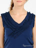 Детали: v-образный вырез, без рукавов, талия подчеркнута тонкой веревочкой, полочка украшена рюшами и тесьмой