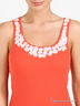 Детали: круглый вырез; на полочке оригинальные нашивки в виде цветов с бусинами