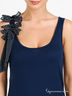 Детали: круглый вырез; на спинке оригинальный принт - точка; правая бретеля украшена декоративными тканевыми бантиками