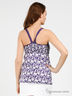 Топ из принтованной цветной ткани. Лиф с фигурной резинкой прилегающего силуэта, бретельки из плнотонной ткани, узкие.
