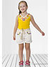 Майка для девочки, изготовлена из хлопка желтого цвета. Воротник украшен кружевом и декорирован разноцветными цветками.