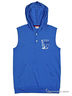 Майка для мальчика с капюшоном. Изготовлена из хлопка синего цвета. Застегивается на две пуговицы. Имеет карман. На груди небольшой принт с морской тематикой.