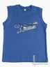 Удобная майка для мальчика из хлопковой ткани. Округлый вырез горловины, на полочке принт.