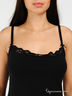 Детали: округлый вырез горловины, регулируемые бретели украшены бантиками, кружевная вставка по вырезу горловины