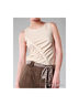 Стильная майка приталенного силуэта. Округлый вырез горловины. Без рукавов. Спереди оригинальная драпировка.