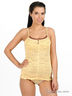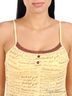 Оригинальная женская майка из эластичной трикотажной ткани. Тонкие эластичные бретели регулируются по длине. Декорирована оригинальным принтом, кружевной вставкой и планкой с пуговицами. Низ изделия посажен на резинку.