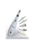 В состав набора входят семь высокопрочных насадок для проведения процедур маникюра и педикюра и лопаточка для удаления кутикулы. Все входящие в состав набора абразивные насадки имеют сапфировое напыление, рассчитанное на длительный срок службы.