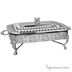 Блюдо под горячее овальной формы. Само блюдо, в котором размещается горячее, из жаропрочного стекла, и непосредственно в нем может идти процесс приготовления. Подставка из металла, с серебряно-никелевым покрытием, украшена цветочным орнаментом. Крышка декорирована позолоченной ручкой в виде банта с розами. В нижней части подставки можно установить свечи-таблетки для поддержания температуры готового блюда. Это элемент сервировки сделает Ваш стол изысканным а обед не забываемым. Размеры: длина-48 см, высота-25 см