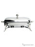 Блюдо под горячее прямоугольной формы. Серия "Корона". Само блюдо, в котором размещается горячее, из жаропрочного стекла, и непосредственно в нем может идти процесс приготовления. Подставка из нержавеющей стали. В нижней части подставки можно установить свечи-таблетки для поддержания температуры готового блюда. Этот элемент сервировки сделает Ваш стол изысканным, а обед не забываемым.