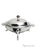 Блюдо под горячее круглой формы. Серия "Корона". Само блюдо, в котором размещается горячее, из жаропрочного стекла, и непосредственно в нем может идти процесс приготовления. Подставка из нержавеющей стали. В нижней части подставки можно установить свечи-таблетки для поддержания температуры готового блюда. Этот элемент сервировки сделает Ваш стол изысканным, а обед не забываемым.