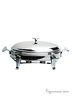 Блюдо под горячее овальной формы. Серия "Звездная ночь". Само блюдо, в котором размещается горячее, из жаропрочного стекла, и непосредственно в нем может идти процесс приготовления. Подставка из нержавеющей стали. В нижней части подставки можно установить свечи-таблетки для поддержания температуры готового блюда. Этот элемент сервировки сделает Ваш стол изысканным, а обед не забываемым.