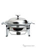Блюдо под горячее круглой формы. Серия "Звездная ночь". Само блюдо, в котором размещается горячее, из жаропрочного стекла, и непосредственно в нем может идти процесс приготовления. Подставка из нержавеющей стали. В нижней части подставки можно установить свечи-таблетки для поддержания температуры готового блюда. Этот элемент сервировки сделает Ваш стол изысканным, а обед не забываемым.