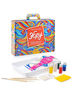 Набор для Эбру с 5 красками для рисования на листах А5 15х21см. Обратите внимание, что существует также набор Эбру с 8 красками. Внимание! Температурный режим не ниже +5°C. Не допускать замораживание красок. Эбру - древневосточная техника рисования, известная как Marbling (мраморирование). «Искусство облаков» — так называли эту технику в Персии и Турции в XV веке, широко применяя ее в переплетном деле. В эбру можно рисовать красивые сюжетные рисунки или создавать яркие абстрактные картинки - в любом случае процесс доставит удовольствие, а результат - радость. Особенность техники заключается в том, что перенос изображения — разводов, имитирующих прожилки натурального мрамора — происходит с жидкой поверхности на декорируемый предмет, обычно бумагу. Перенос рисунка на бумагу напоминает чудо и вызывает искренний восторг у детей и взрослых. Импровизационный характер Эбру, бесконечное разнообразие декора и диапазон колористических решений открывает перед марморированием широкие перспективы. Это творчество без границ! Перетеканием красок, своеобразными волнистыми контурами достигается неповторимое живописное полотно, узоры не повторяются, а разнообразная фактура, смелый ритм и возникновение спонтанных пейзажей будят воображение. В Эбру в качестве полотна используется специальная сгущенная вода, на которую с помощью кисти и палочек наносятся краски и ловко преобразуются острыми палочками и гребнями в причудливые витиеватые узоры. Для того, чтобы получить интересный результат, совсем не обязательно быть мастером. Красивые узоры, цветы, звезды получаются сами собой, что не может не радовать маленьких художников. Эбру позволит весело и полезно провести время с ребенком, при этом создавая что-то своими руками и наслаждаясь каждым моментом. Приобщение к восточной живописи поможет ребенку переключиться с интеллектуальной деятельности в школе на создание и созерцание прекрасного, познание природы и самого себя. Яркие краски Эбру создадут особое настроение даже в хмурую погоду. В комплекте: 5 красок: красный, желтый, зеленый, синий, белый; загуститель, пластиковый лоток формата А5, кисть, гребень пластиковый, бумага А5 10 листов, шпажки деревянные.