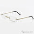 Элегантная безободковая оправа с тонкими оригинальными металлическими заушниками с пластиковым окончанием.