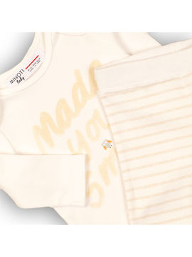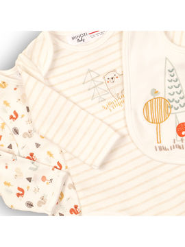 Комплект: ползунки, боди, штаны, кофта, слюнявчик Minoti детский, цвет кремовый