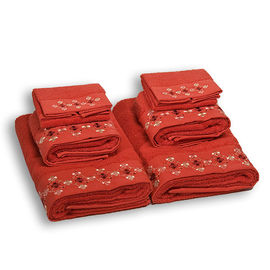 Комплект махровых полотенец из шести предметов хлопок розовый