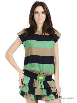 Платье Pole & Pole женское, цвет зеленый / темно-синий / молочный