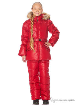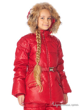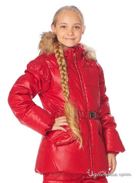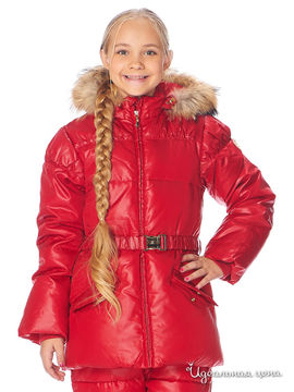 Полупальто пуховое с отделкой из нат меха енота Junior Republic для девочек, цвет красный