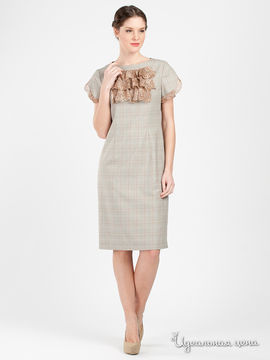 Платье Модика женское, цвет бежевый / принт клетка