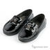 Изящные лаковые мокасины на плотной резиновой подошве. Декорированы металлической пряжкой.