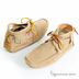 Необычные мужские мокасины от Kurt Geiger, выполненные из роскошной замши благородного серо-бежевого цвета. Желто-коричневый шнурок, который используется в качестве застежки, а также украшает край обуви, смотрится на основном фоне ярко и выигрышно. Верх отделан длинной бахромой, задник украшен прямоугольными вставками в тон. Для приятного контраста мокасины прострочены белой нитью.