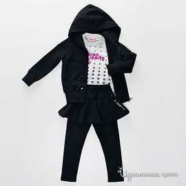 Комплект: толстовка, футболка и брюки для девочки, рост 98-152 см