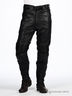 Мотобрюки выполнены из плотной натуральной кожи. Шелковистая подкладка. На бедрах и на коленях композитные защитные вставки. В области сгибов эластичная ткань. Высокий пояс с молнией для пристегивания к куртке и область колен и бедер дополнены плотной многорядной резинкой. Низ брюк дополнен молнией, регулирующей ширину изделия. Втачной карман на молнии. Застежка на молнию и на металлический крючок с липучкой.