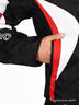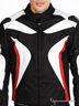 Мотокуртка выполнена из плотной непродуваемой ткани с пропиткой. Синтепоновая подкладка отстегивается. На локтях, плечах и спинке композитные защитные вставки. Синтепоновые вставки на спинке. По низу изделия проходит синтепоновое уплотнение и вставка из уплотненной многорядной резинки. Воротник-стоечка. В подкладке втачной карман на липучке и карман на молнии (для телефона). Втачные карманы на молнии на внешней части изделия. На рукавах молнии и хлястики на липучке, регулирующиеся по длине. По бокам изделия хлястики на липучке. Застежка на молнию и липучку.