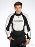 Мотокуртка выполнена из плотной непродуваемой ткани с пропиткой. Синтепоновая подкладка отстегивается. На локтях, плечах и спинке композитные защитные вставки. Воротник-стоечка. Втачные карманы на молнии на внешней части изделия. На рукавах молнии и хлястики на липучке, регулирующиеся по длине. По бокам изделия хлястики на липучке. Застежка на молнию и липучку.