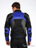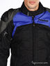 Мотокуртка выполнена из плотной непродуваемой ткани с пропиткой. Синтепоновая подкладка отстегивается. На локтях, плечах и спинке композитные защитные вставки. По спинке проходят синтепоновые вставки. В подкладке карман на липучке и карман для телефона на резинке. Воротник-стоечка. Втачные карманы на молнии на внешней части изделия. На рукавах молнии и хлястики на липучке, регулирующиеся по длине. По бокам изделия хлястики на липучке. Застежка на молнию и липучку.