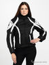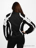 Мотокуртка выполнена из плотной непродуваемой ткани с пропиткой. Синтепоновая подкладка отстегивается. На локтях, плечах и спинке композитные защитные вставки. Воротник-стоечка. В подкладке втачной карман на молнии и накладной на клапане (для телефона). Втачные карманы на молнии на внешней части изделия. На рукавах молнии и хлястики на липучке, регулирующиеся по длине. Внизу по бокам уплотненные многорядные резинки. Застежка на молнию, кнопку и липучку. Куртка декорирована контрастными вставками.