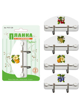 Планка с 2 крючками Фрукты Мультидом, цвет в ассортименте
