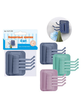Поворотные крючки, 4 шт. Мультидом, цвет в ассортименте
