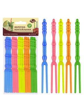 Вилочка коктейльная, длина 110 мм, 20 шт. Мультидом, цвет в ассортименте