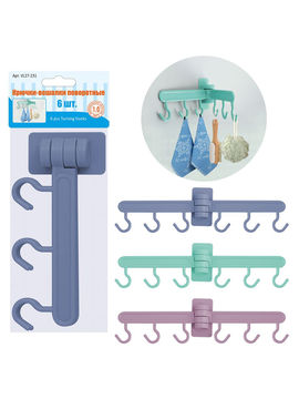 Крючки-вешалки поворотные, 6шт. Мультидом, цвет в ассортименте