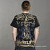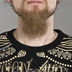 Мужская футболка выполнена из 100% хлопка. Модель прямого покроя, имеет круглый вырез, отделанный мягким трикотажем. Футболка украшена тату-принтами, декорированными цветными стразами.