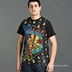 Мужская футболка выполнена из 100% хлопка. Модель прямого покроя, имеет круглый вырез, отделанный мягким трикотажем. Футболка украшена тату-принтами, декорированными цветными стразами.