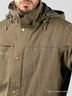 Внешняя куртка выполнена из двухслойного высокотехнологичного материала с мембраной CeplexActive. Капюшон с козырьком пристегивается к изделию на кнопки и затягивается на резинку с клипсами в кулиске. Воротник-стойка. Подкладка куртки выполнена из материала разной фактуры: в верхней части куртки - сетка, в нижней части куртки и рукавов, на капюшоне - тафта. Фронтальная застежка на двунаправленную молнию и ветрозащитную планку с кнопками. Функциональные карманы: два внутренних (один большой на липучке, один средний на молнии); пять внешних (два нижних боковых кармана-клапана на пуговицах, два нижних врезных на молнии, один нагрудный потайной карман на молнии). Низ куртки затягивается на резинку с клипсами в кулиске с внутренней стороны. Манжеты регулируются ремешком с кнопкой.