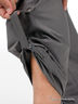 Прямой крой, тонкая плащевая ткань. Низ брюк с кулисой и эластичным шнуром с фиксатором. Брюки легко можно превратить в бриджи при помощи хлястика и застежки на кнопку. 2 передних, 2 задних кармана, один боковой карман на молнии.